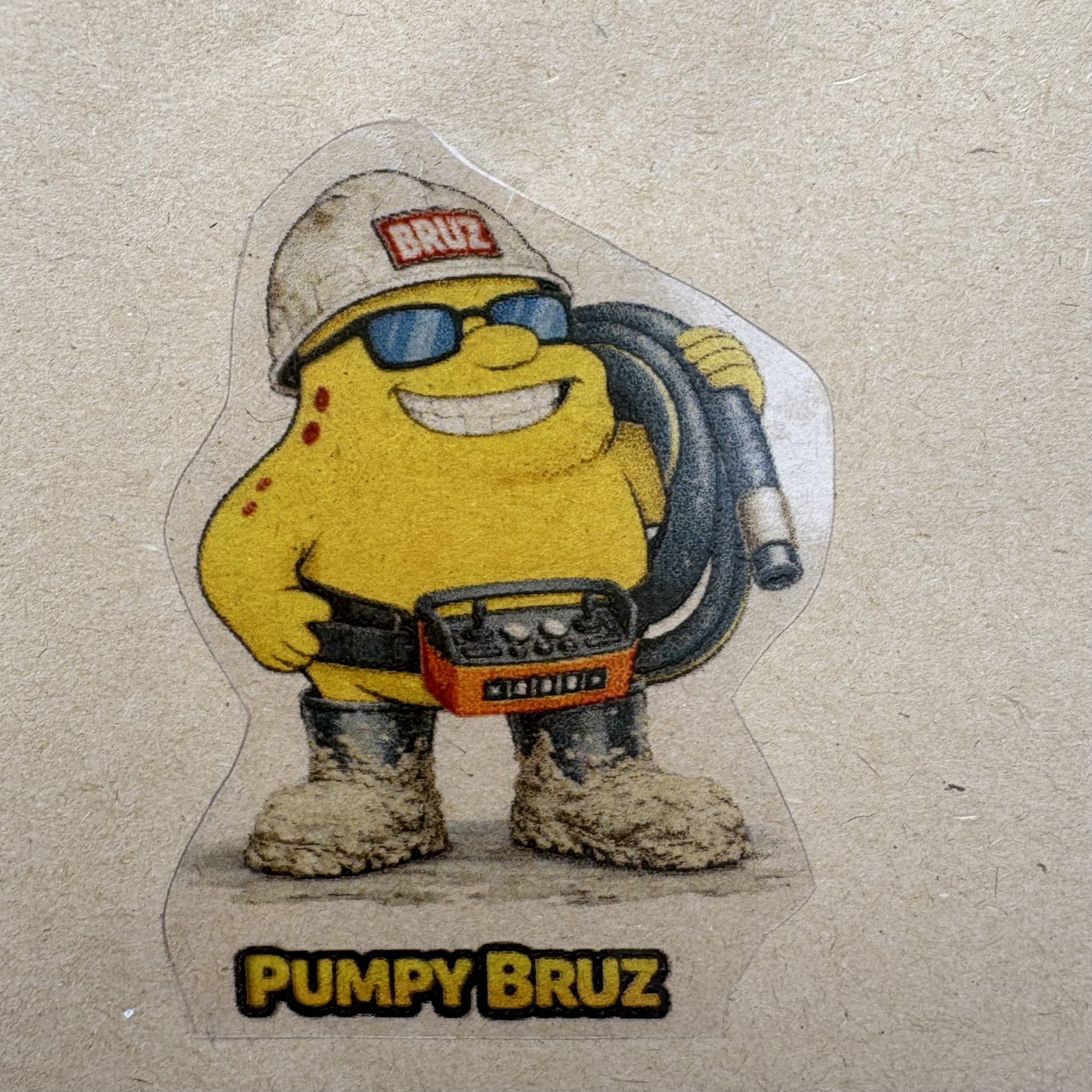 Built for the legends running the pump, PumpyBruz sticks strong on helmets, trucks, toolboxes, and site gear.
